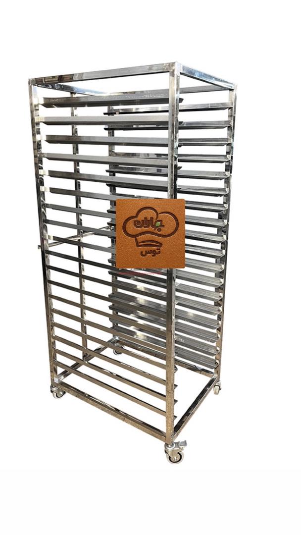 ترولی استیل برای حمل و نگهداری شیرینی در قنادیها ابزاری بسیار کاربردی است که به دلیل مزایای زیادی که دارد، در صنعت قنادی و پخت و پز کاربرد فراوانی پیدا کرده است. ترولی حمل سینی قنادی 18 طبقه از جنس استیل ضد زنگ ساخته شده است که باعث میشود دوام بالایی داشته باشند و به راحتی در برابر رطوبت، آلودگیها و شرایط محیطی مقاوم باشند.