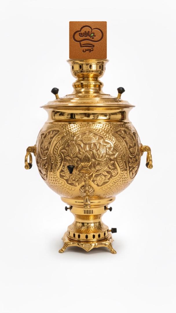 سماور گازی کروی 25 لیتری ایران نیکل، مناسب رستوران، چایخانه و مصارف تجاری. طراحی کروی با بدنه برنج، عملکرد قدرتمند و مصرف بهینه. خرید مستقیم از فروشگاه بهاران توس با گارانتی معتبر.